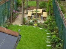 В този случай местоположението на всеки ландшафтен елемент е от съществено значение.. Зеленчукови легла, жив плет или цветни лехи трябва да бъдат поставени в целия парцел. Това се прави, за да се даде визуално разширение на тясната геометрична форма. В непосредствена близост до леглата можете да подредите малко езерце или басейн. Логично продължение на такъв резервоар ще бъде зона за отдих около него..
