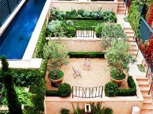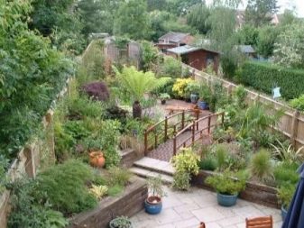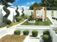 Други тесни оградни елементи включват катерещи се решетки, жив плет и храсти и леки огради. Всички те помагат за създаването на един вид задкулисни ъгли. В такива ъгли можете да поставите групи за хранене, миниатюрни зони за отдих или да скриете помощни обекти там. Това разделяне на пространството на изолирани зони допринася много за визуалното разширяване на сайта..