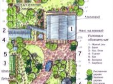Всички останали функционални зони са разположени зад къщата. Тъй като общата ширина на цялата територия е незначителна, те трябва да бъдат оборудвани в определена последователност с разстояние от къщата (в низходящ ред на дейностите по прилагане). По -добре е да поставите зона за отдих точно зад домашната сграда. Има и лятна кухня с трапезария и детска площадка. Зад тях идва ред на градината, зеленчуковата градина и икономическите територии.
