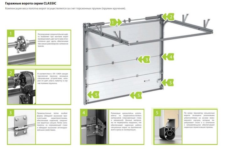 Основно оборудване на стандартна секционна гаражна конструкция с торсионен механизъм:
