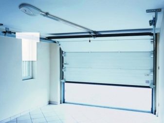 В процеса на отваряне мрежата на автоматичния секционен продукт се издига вертикално, движението се извършва по водач, разположен под самия таван. В процеса на отваряне платното се сгъва, издига нагоре, заемайки хоризонтално положение. Процесът на затваряне се извършва по същия начин, но в обратния режим. Тази система не изисква допълнително пространство, тя ще ви позволи да оставите колата плътно притисната до вратите.