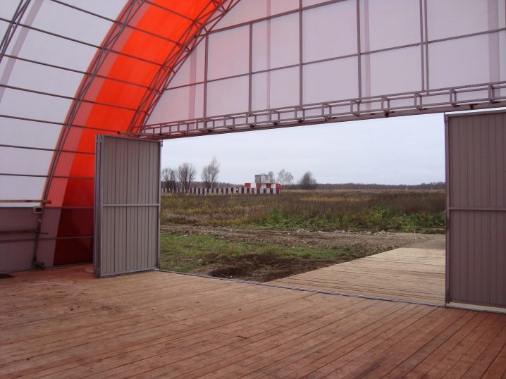 Този вид продукт е самоносеща се мобилна структура. Рамката на вратата се движи по ролкова конструкция. Този механизъм е инсталиран върху фундамент. За заключване на конструкцията се използва болт..