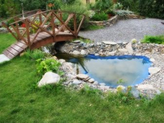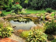 Изкуствен резервоар на малка площ също ще изглежда изгоден в крайградското пространство. Тя може да бъде красиво украсена с големи, масивни камъни или здрави насаждения от различни растения. Можете също така да построите дървен мост, който минава през езерото. Това ще придаде на ландшафтния дизайн изискан и приятен вид..