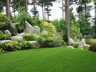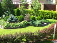 Впечатляваща площ от земя ще ви позволи да подредите върху нея много декоративни храсти и дървета (туя, хвойна, хортензия, калина). Днес дизайнерите често комбинират в проект на един пейзаж както джуджета, така и нискорастящи насаждения (около 1,5 м) и високи (не повече от 6 м). Такива комбинации ще се поберат идеално в просторни зони..