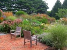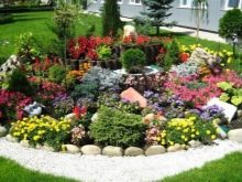 Също така, големи цветни лехи, които комбинират няколко вида цветя (рози, теменужки, георгини, лалета, лилии), ще изглеждат страхотно в такива градински площи. Такива композиции ще създадат приятна и уютна атмосфера във вашата градина. Можете също така да използвате малки цветни лехи, които ще подчертаят изтънчеността и красотата на вашия сайт..