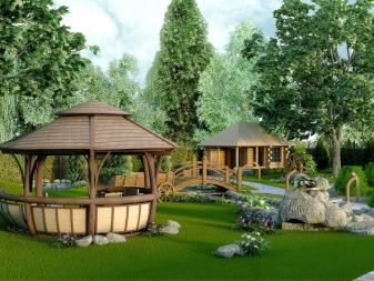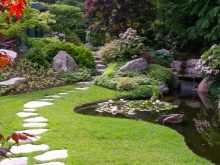 На градинска площ от 25 декара можете да поставите малък брой големи високи дървета и няколко цветни лехи, а останалото пространство трябва да бъде украсено с красиви и креативни сгради от дърво или камък. Малък декоративен мост ще изглежда впечатляващо и елегантно. Също така, необичайни беседки за отдих могат да дадат специална атмосфера на градината..