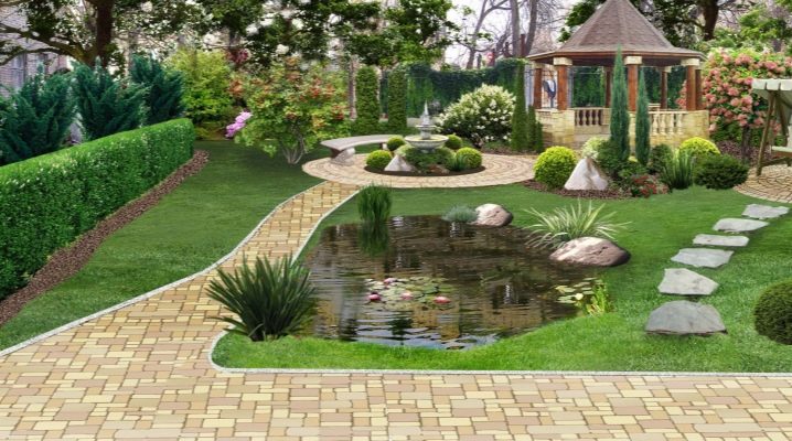 Когато декорирате ландшафтния дизайн на земна зона, струва си да запомните това, въпреки огромния размер на територията, тя не може да бъде претоварена с ненужни детайли и структури, в противен случай градината ще се окаже твърде безвкусна и грозна. При изготвяне на предварителен план за подреждане на пространството е необходимо органично да се поставят всички елементи на територията на обекта.