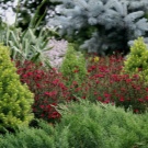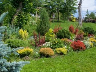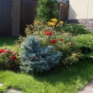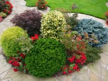 Също така, не забравяйте за другите елементи на планираната композиция – широколистни, цветя, гостоприемници, които ще повлияят на избора на цвят и размер на иглолистните.