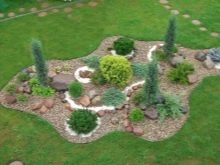 Цветното легло с иглолистни дървета ще бъде отличен вариант за декориране на малък градински парцел или селска вила. Тази версия на композицията е особено обичана от градинарите, защото може да бъде поставена с минимални разходи на стандартни няколкостотин квадратни метра..
