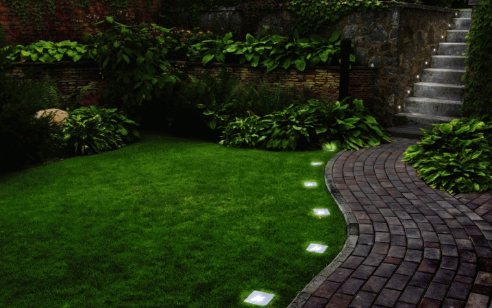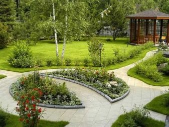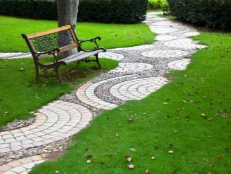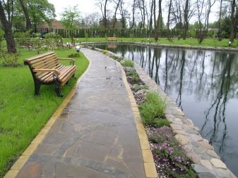 - фенери, пейки и градински скулптури могат да бъдат инсталирани от двете страни на пътеката. Бордюрите могат да бъдат направени от растения, а за декориране на централната част на пътеките често се използват неправилни цветни лехи;