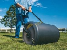 - Когато цялата тревна площ е положена, тя се търкаля. За валцуване се използва специален градински валяк. Извършва се, за да се направи кореновата система на тревата по -плътно прилепнала към земята и за да се отстранят въздушните джобове, които се образуват по време на процеса на полагане. Повторете процедурата отново на третия ден след оформянето..