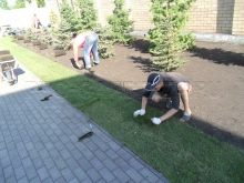 - Подготовка на плодородния слой. Той трябва да е с дебелина най -малко 15 сантиметра. Ако е необходимо, добавете го. Повърхността е изравнена. За да изглежда бъдещата морава естествена и да се вписва добре в дизайна на обекта, нивото на подготвената площ се прави на няколко сантиметра под околната зона..