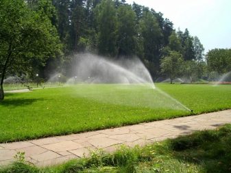 Необходимо е да се осигури постоянно овлажняване на почвата под тревата с дълбочина най-малко 10-15 сантиметра. В противен случай тревите, които изграждат тревата, в крайна сметка ще започнат да изсъхват, пожълтяват и в крайна сметка ще умрат. Поливните маркучи трябва да бъдат оборудвани с накрайници за пръскане. Това ще предотврати ерозията на плодородната почва и няма да увреди корените на растенията..