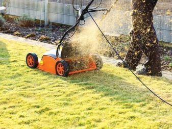 За да се отстранят отломките от тревата, както и окосените части от растенията, тя се разресва с градински гребла. Тревата се пени през пролетта и след всяко косене на тревата. През пролетта тревата се разресва, след като целият сняг се стопи. В същото време боклукът, натрупан през зимата, остатъците от стара трева и излишната влага се отстраняват от повърхността. Ако е необходим допълнителен дренаж, тревата се повдига леко с градинска вилица на всеки 25-30 см.