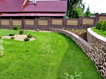 Комбинацията от трева и камък на поляната изглежда интересна. В този случай се използват както естествени, така и изкуствени камъни..