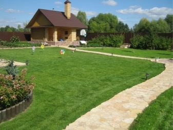 Често на площадката се намира тревна площ в комбинация с градински пътеки. Ако допълнително засадите цветя между тях, тогава цялата композиция може да се превърне в истинска украса на двора..