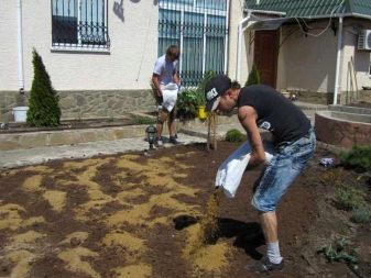 Повърхността трябва да се почисти от стара трева, корени, камъни, отломки. Почвата трябва да бъде внимателно изравнена. За по -добро оцеляване на растителността в земята може да се добави пясък, черна почва или, например, хумус. Плодородният почвен слой не може да бъде по -малък от 10 cm.