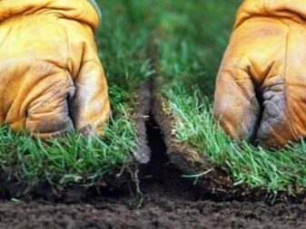 Необходимо е да поставите лентите на равна площ, като се уверите, че зелените и кореновата им система са деформирани възможно най -малко. Ако е необходимо, тревата може да се отреже заедно с подложката с помощта на остър градински нож.
