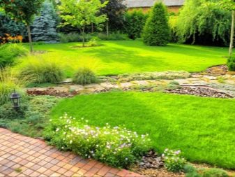 - партерна морава украсява зоната пред къщата. Основното изискване за него е представителен външен вид, подчертаващ статута на собственика..