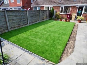 - лекота на грижа. Не е необходимо да се режат, оплождат. Въпреки това, изкуствените тревни площи все още се нуждаят от поливане и проветряване;