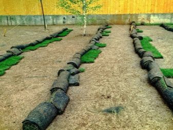 Те преминават през положената морава със специална трева за трева. Ако пренебрегнете това правило, под тревата се образуват въздушни джобове и това ще усложни аклиматизацията на тревата, някои области може изобщо да не се вкоренят..