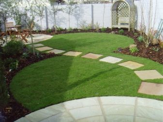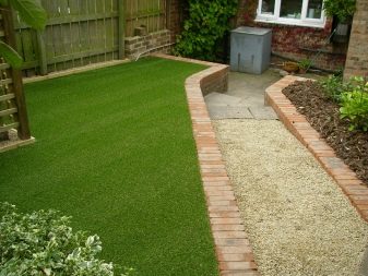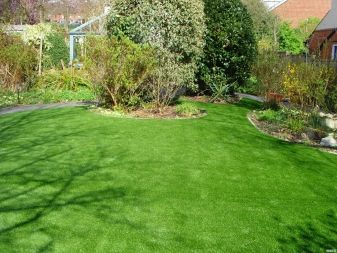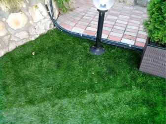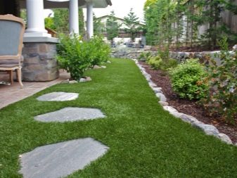 Изкуствената трева се използва като елемент на ландшафтен дизайн. Понякога само определени части от градината или зеленчуковата градина са изпълнени с нея. Важно нещо в този случай е комбинацията от покритие с други декоративни детайли на обекта..