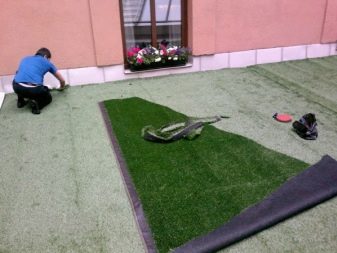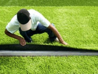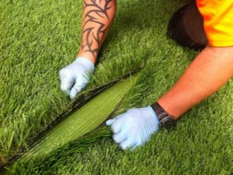 Пластмасовата морава е прикрепена със специално лепило, което се нанася върху подплатената подложка. За допълнителна безопасност, пенополимерите понякога се поставят под горния слой на тревата. Тази опция може да се намери в детските площадки..