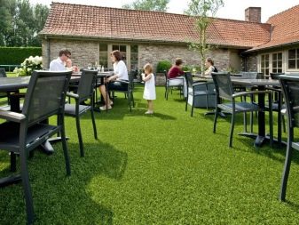 - Способността на изкуствена повърхност да се нагрява до много високи температури. В горещите дни синтетичната трева не само се нагрява, но и повишава температурата на въздуха близо до повърхността му. Това може да причини дискомфорт по време на работа..
