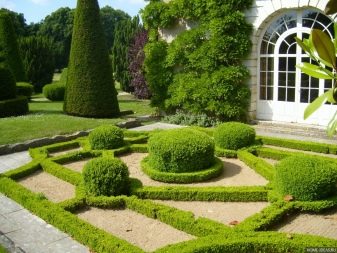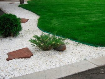 - Ако участъците, обрамчени от мраморни плочки, са покрити с морава, няма да е излишно да се монтират декоративни скулптури близо до една от границите..