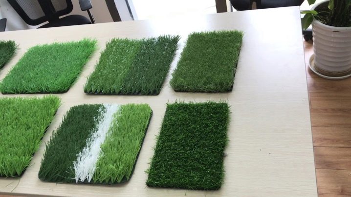 - Характеристики на цвят и текстура. Препоръчва се да се даде предпочитание на матовите продукти, тъй като те се характеризират с по -дълъг експлоатационен живот. Качеството на покритието се показва и от степента на близост на цвета на тревата до сянката на естествената трева. Колкото по -естествен е сянката, толкова по -добри са характеристиките на продукта..