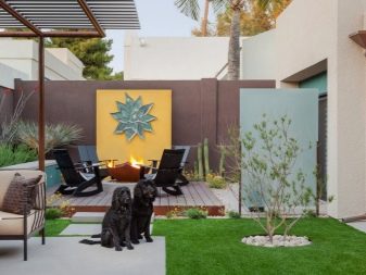 Дизайнерите не се спират на традиционната инсталация от синтетична трева. Те предлагат интересни опции, които превръщат сайта в страната в произведения на ландшафтното изкуство..