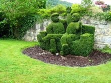 С помощта на декоративна морава на сайтовете се създават елегантни елементи. Понякога релефът прилича на мебели.