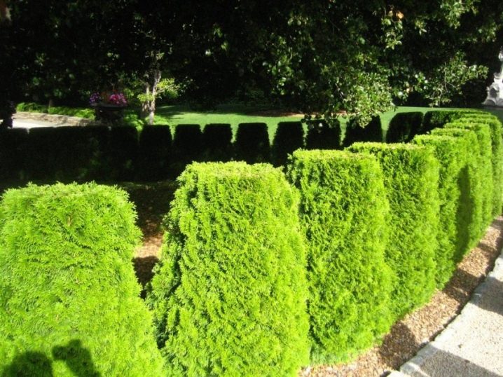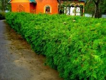 - туя също е непретенциозна, ако спазвате условията за засаждане и грижи за дървото. Растението не обича сянка и твърде ярко слънце. Препоръчително е да поставите такъв плет в частична сянка;