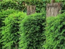 Много хора избират иглолистни дървета. Те са популярни в живия плет, тъй като запазват своята привлекателност през цялата година. Когато избирате растителност, не забравяйте, че само декоративни сортове могат да се използват за жива ограда..