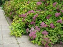 - спирея. Този широколистен храст има много видове сортове. Растението расте бързо, така че след три години можете да получите атрактивна декоративна ограда;
