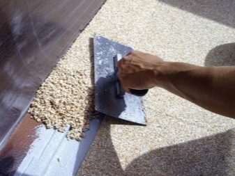 - المعادن الدقيقة. يشمل تكوين هذه اللصقات رقائق الرخام الملونة. تم تصميم المواد المعدنية الدقيقة للاستخدام في الماكينات واليد.