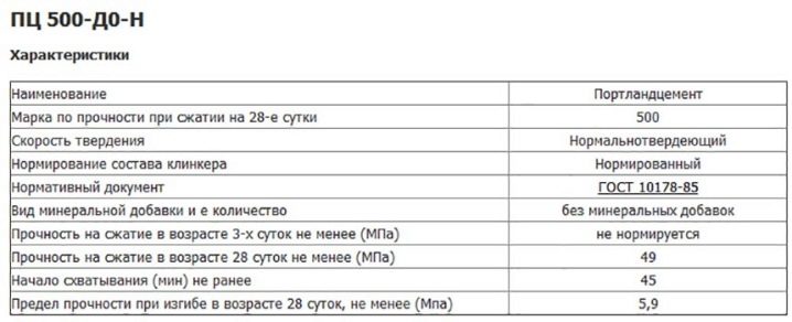 يشير مصنعو مواد البناء على العبوات إلى معلومات عن التركيب والوصف والخصائص التقنية لمنتجاتهم.. يحتوي Cement M500 على المعلمات المميزة التالية: