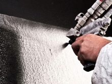 يمكن معالجة المساحات الكبيرة بسرعة عن طريق الرش بدون تهوية. أيضًا ، بفضل استخدام الأجهزة الكهربائية ، من الممكن توفير طلاء أكثر فاعلية للهياكل دون عيوب خارجية..