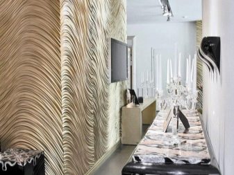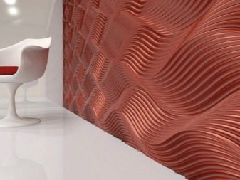 طريقة مبتكرة وغير عادية للغاية للديكور الداخلي هي استخدام ألواح MDF ثلاثية الأبعاد المصنوعة من الألواح الليفية. هم موضع تقدير ليس فقط لحقيقة أنها مادة تشطيب صديقة للبيئة وآمنة لصحة الإنسان ، ولكن أيضًا لتصميمها الأصلي للغاية. نتيجة للمعالجة على معدات خاصة ، يحتوي سطح اللوح على تأثيرات هندسية حجمية ، وموجات ، ونحت ، وما إلى ذلك.. لا يلعب استخدام ألواح MDF دورًا زخرفيًا فحسب ، بل يلعب أيضًا دورًا عمليًا كعزل حراري, بعد كل شيء ، يتم إرفاقها بالصندوق ، وتمتلئ المساحة بين الجدار والواجهة ، إذا رغب العميل ، بالعزل. وبفضل الطلاءات الواقية الخاصة ، فإن ألواح MDF ثلاثية الأبعاد ستخدم مالكها لسنوات عديدة..