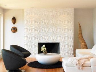 يمكنك استخدام الألواح لتقسيم المناطق السكنية. ولكن أيضًا من تقنيات التصميم الفعالة إنشاء مناطق منقوشة على الجدران لإنشاء تصميم داخلي حديث. على سبيل المثال ، يمكنك وضع مثل هذه الألواح في منطقة المدفأة أو أي مكان ترغب في تسليط الضوء عليه في الغرفة. يمكن أن تغطي لوحات MDF ثلاثية الأبعاد الجدار بالكامل أو جزء منه. على سبيل المثال ، يمكن إنشاء غطاء حائط حجمي على خلفية منطقة الأريكة ، أو يمكن استخدامه لتزيين طاولة البار في غرفة المعيشة..