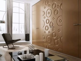 يمكن أن تحتوي لوحات MDF ثلاثية الأبعاد على مواد وطبعات مختلفة ، فهي لا تزين الجدران فحسب ، بل تزين أيضًا الأسقف والجدران وحتى الأثاث. على عكس ألواح الجدران الجبسية التقليدية ، يمكن لمواد التشطيب المبتكرة ذات التأثير ثلاثي الأبعاد ، على سبيل المثال ، تزيين الأثاث أو الأبواب الداخلية. نظرًا لأن الألواح مصنوعة من مواد طبيعية ولا تشكل تهديدًا للصحة ، فيمكن استخدامها أيضًا لتزيين أماكن المعيشة حيث نقضي أكبر وقت فراغ ممكن – على سبيل المثال ، غرفة المعيشة أو غرفة النوم أو الحضانة. على الرغم من أن الخبراء يحذرون المالكين من أن بعض الحلي يمكن أن تتعب العيون ، لذلك يوصى بالتعامل بعناية مع اختيار النسيج.