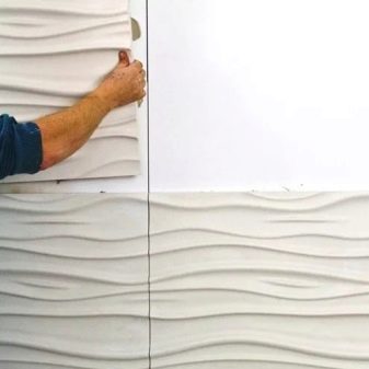 إذا كان الإطار “يأكل” حتى سمك 35 مم ، فسيتم التثبيت على الألواح والزوايا دون تكوين فجوة بين الجدار واللوحة. ولكن يمكنك أيضًا استخدام طريقة التثبيت بالغراء ، ومع ذلك ، في هذه الحالة ، لا يمكنك تثبيت الألواح الكاملة واللوحات بأقصى حجم 800 × 800 مم. باستخدام طريقة التثبيت اللاصقة ، يجب معالجة السطح مسبقًا وتسويته. عند استخدام المسامير السائلة ، تأكد من أنها تطابق لون الألواح تمامًا. كطبقة علوية ، يتم استخدام كل من الطلاء العادي والجبس ، أو قشرة الخشب القيمة ، أو فيلم PVC أو الطلاءات الخاصة ، والتي سيتم مناقشتها أدناه..