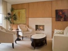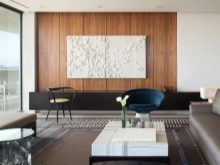 - مثال صارخ على التصميم الداخلي الفخم. تستخدم ألواح MDF كزخرفة لأحد الجدران.
