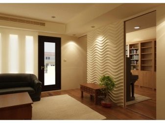 الدراية الأخرى هي لوحات MDF بتأثير ثلاثي الأبعاد. في مجموعة متنوعة من هذه اللوحات ، يمكنك العثور على خيارات تغزو أي شخص. يتم تطبيق تقليد الأمواج والأشكال الهندسية الحجمية على سطح الألواح ، ويتم استخدام أنواع مختلفة من النحت والتضاريس.