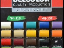 يتم إنتاج المينا في نطاق ألوان واسع تنظمه GOST. يتيح لك ذلك تحديد الظل المطلوب بسهولة وشراء الطلاء لأي نوع من أعمال التشطيب. يتم تمثيل طيف الضوء بألوان الأبيض والرمادي الفاتح والكريم والبيج الفاتح. يتضمن الجزء الغامق الألوان الأسود والأزرق الداكن والأخضر الداكن ، بالإضافة إلى الرمادي والبني..