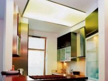 - موقوف عن العمل – من مثبتات السقف ، يتم التعليق بواسطة الكابلات ، مما يسمح لك بإنشاء منطقة إضاءة محددة بوضوح ، على سبيل المثال ، يمكنك تمييز طاولة الطعام في المطبخ.
