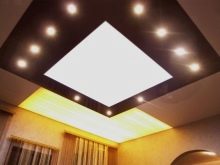 مثل الألواح الخفيفة ، تكتسب الأسقف الممتدة شعبية بسبب مظهرها الممتاز ، إلى جانب سهولة التركيب والتشغيل ، مما يحدد الاستخدام المتكرر للمفاصل. يمكن تثبيت لوحة الإضاءة تحت سقف معلق من القماش ، على الرغم من أن المصباح يتم تركيبه في كثير من الأحيان في مكان مخصص للقطع من الأسقف المطاطية المحبوكة والفيلم. تضمن درجة حرارة التشغيل المنخفضة للجهاز السلامة الكاملة عند الاقتراب من سطح PVC أو القماش ، ولا يفسد مظهر الطلاء.