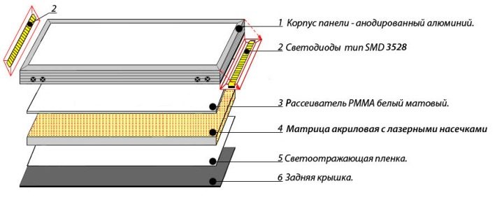 - مصدر ضوء LED. يعتمد عدد المصابيح على حجم اللوحة وشدة الضوء المطلوبة ؛