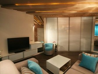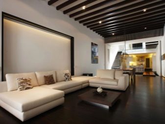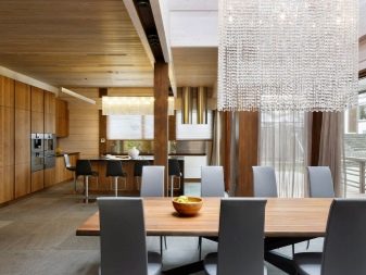 تبدو الأسقف الخشبية في المناطق الداخلية للشقة الحديثة مؤثرة للغاية. سيكون زخرفة السقف الخشبي مناسبًا لأي نمط تقريبًا.