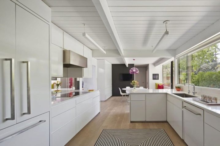 إذا كانت هناك مهمة لجعل المساحة أكبر وأوسع ، يمكنك استخدام الجدران والسقف المصنوع من الخشب المطلي باللون الأبيض في الداخل.. وفي هذه الأنماط الداخلية ، غالبًا ما يستخدم المصممون الأسقف الخشبية: